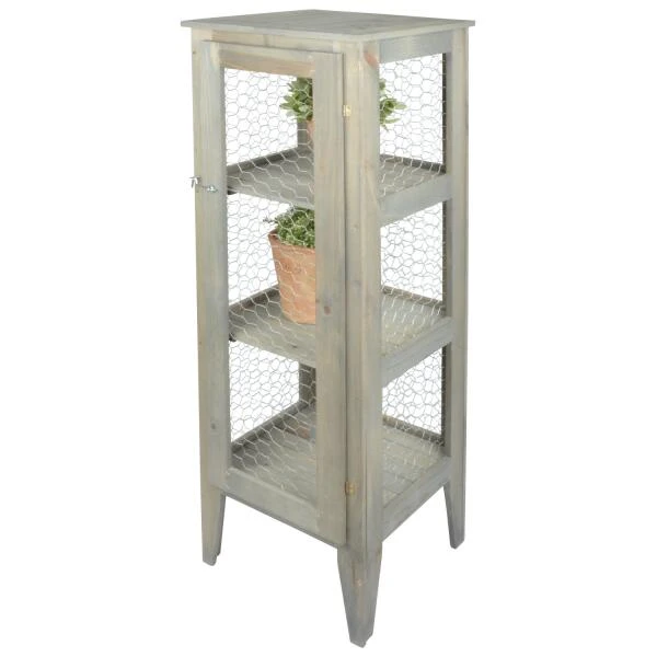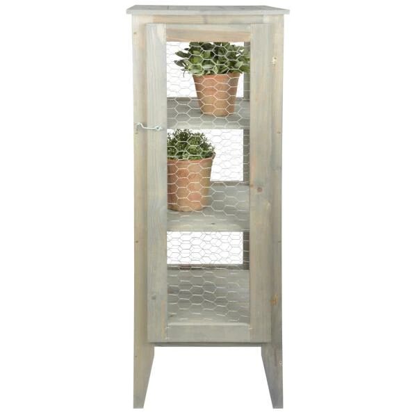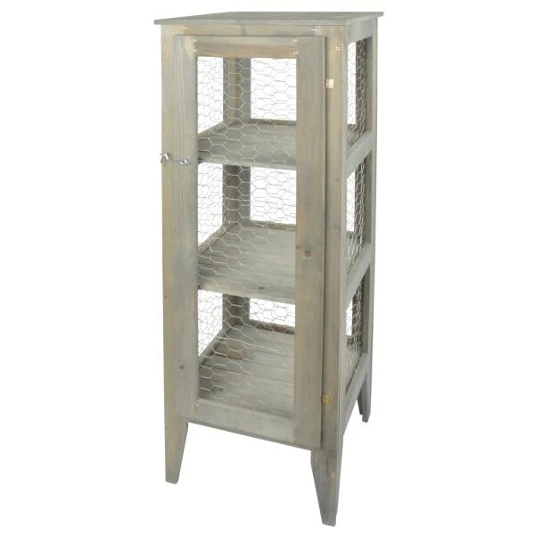 Terug naar de oude boerderij van weleer. Deze originele landelijke étalagekast is afgewerkt met kippengaas en heeft drie niveaus. Het is een leuk idee om planten en zaailingen te etaleren met als voordeel dat de vogels er niet bijkunnen. De kast kan ook gewoon worden gebruikt voor het opbergen van allerhande huis- of tuinmateriaal.