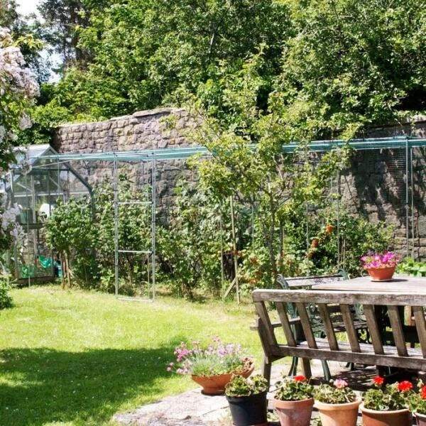 Een ruime inloopkooi voor het beschermen van kleinfruit, gewassen in de groentetuin of voor het ophokken van neerhofdieren zoals kippen, duiven en ander pluimvee. Ook laagstambomen, vijgenbomen of fruitbomen in pot kunnen met deze handige kooi worden beschermd.